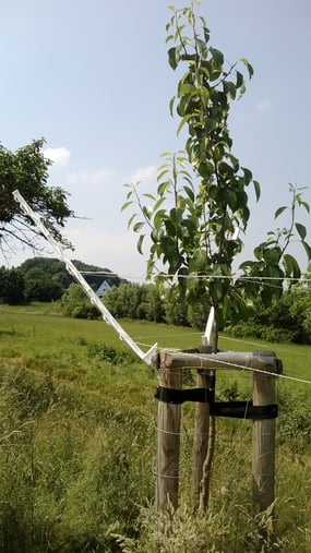 Dank Ihrer Spenden konnte bei besonders gefährdeten Bäumen der zusätzliche Schutz der Baumkronen jetzt angebracht werden. So kann die Beweidung der Fläche beginnen.